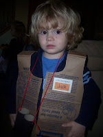 Jack's party was this afternoon and we all had a great time. His little friends came over and did a dinosaur hunt with us. They all looked so cute in their little paper bag vests. The dinosaur eggs were a big hit. I think this age for parties is great because you don't have to do a whole lot to entertain. They love to just play. We had a dinosaur lunch, dino chicken nuggets, dinosaur bones (pretzels) and dinosaur eggs (grapes). Lunch was not as big of a hit as playing with all the new eggs and dinosaurs that they found. Then it was the big moment for the cake, there is always a little tear when you have to cute into it, especially when someone asks for a piece of the head (no! not the head!). After even more playing, it was time for presents. Jack got great presents from all his friends and already loves playing with them (as does Cole). Thank you to all our little friends and their moms for coming and playing with us. We had a great time.