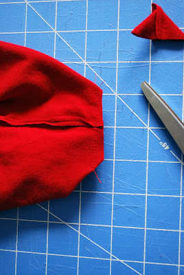 Pinch the corner flat and sew a line across like so, about 1 1/2- 2" from the point. Repeat for other corner.