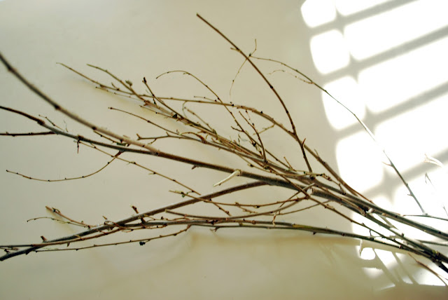 Then I spray painted them (I know you are starting to ask yourselves, "what doesn't she spray-paint...the answer not much). This took a couple of coats. I know it is ironic that I painted branches brown, but I wanted them darker than their natural color.