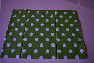 First iron inside fabric into thirds, you can see not evenly. The middle should measure about 7" across. 4" on the one side and 6" on the other. Fold it right side up and into itself...like it will be once it is assembled.