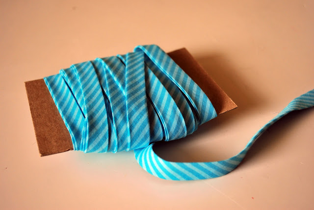 Once the vinyl is pinned in place, sew the vinyl, the inside, and the outside fabric together by sewing directly in the folds. So you will sew in two places. I used a thread that coordinated with the biased tape. Sorry, no picture of this step...oops.