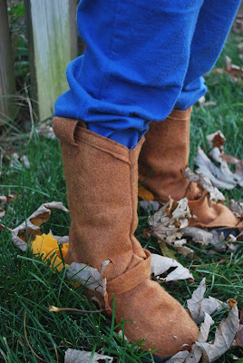 His entire costume is made from fleece. Good thing since we have recently had a snow storm.