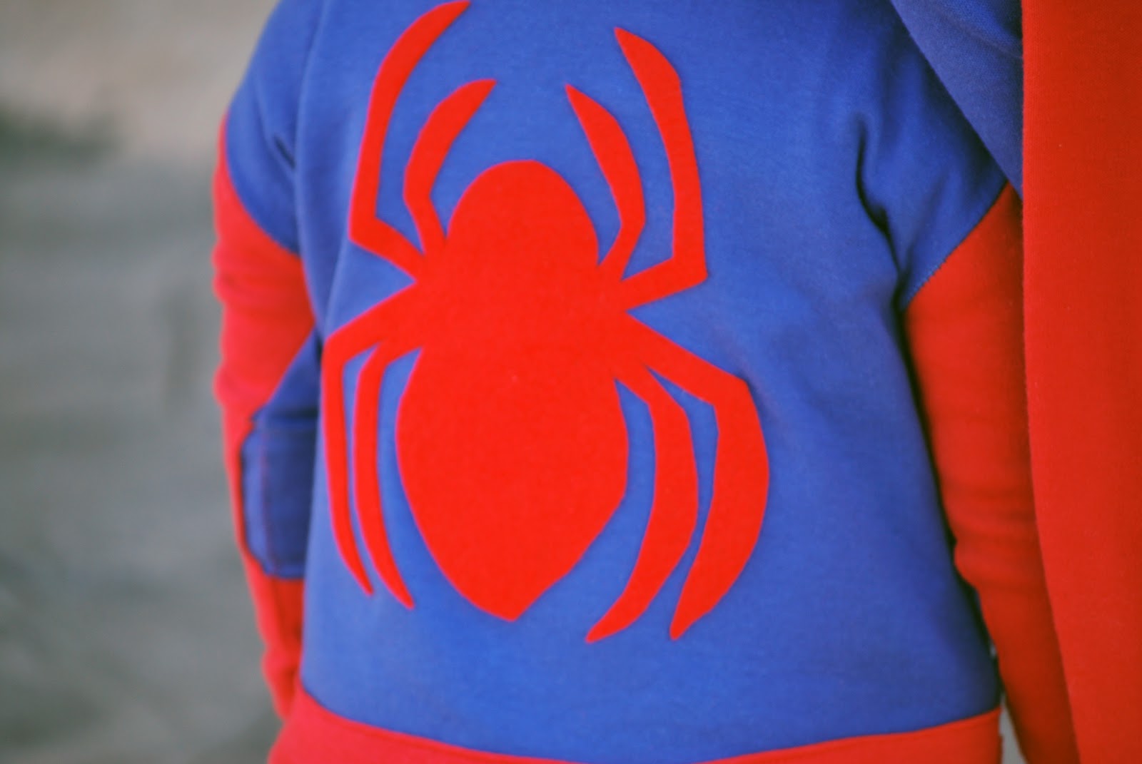 His costume has been done the longest. He LOVES it. When you ask him what he is going to be for Halloween he happily declares, "PIDERMAN!" Right after I made it he wore the hat for hours.