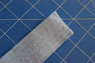 Cut several 2 1/2" strips of each ribbon. Just shy of a ton. I ended up using 12 pieces a side. Fold them each in half and iron them so they stay folded.